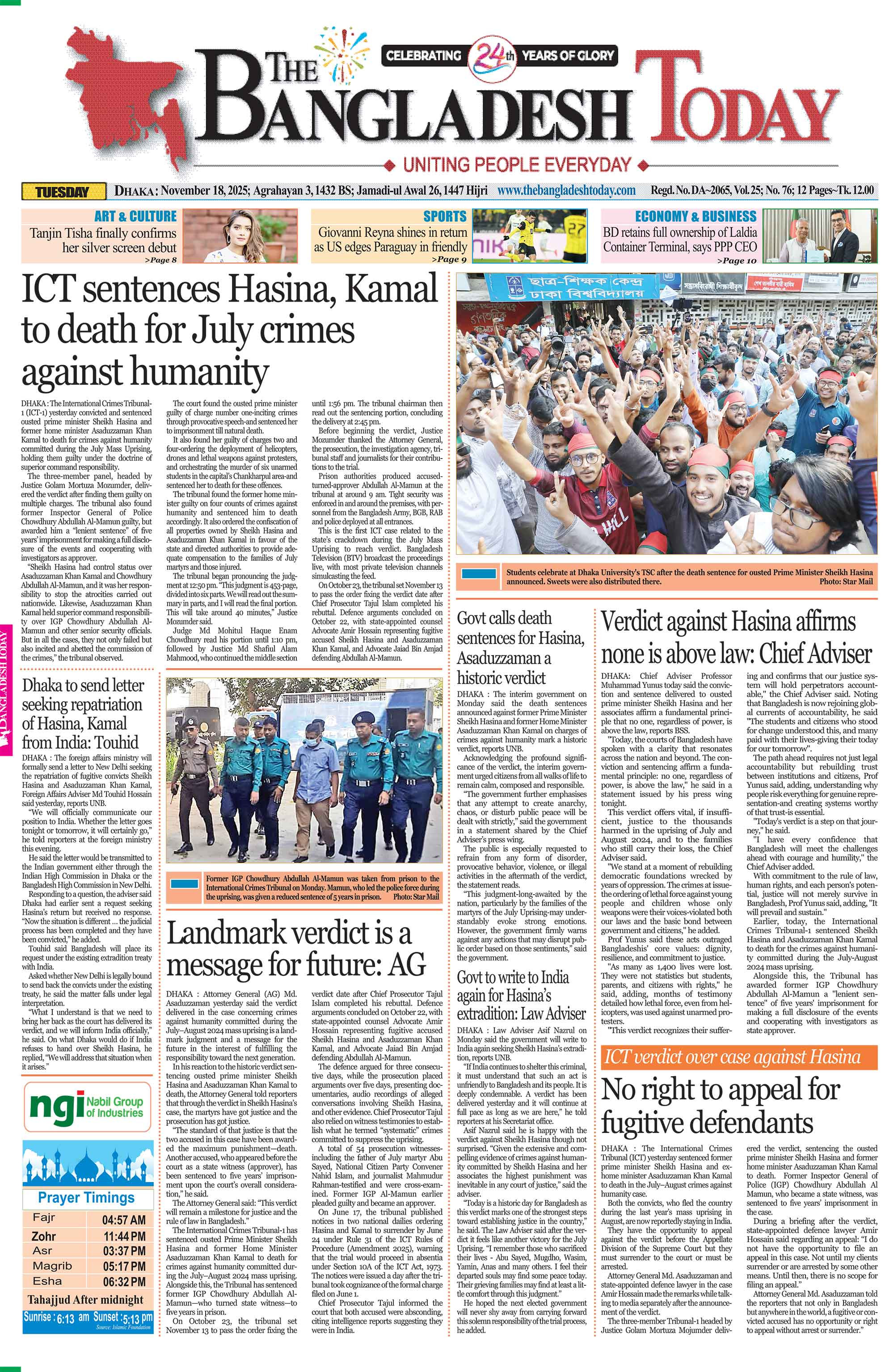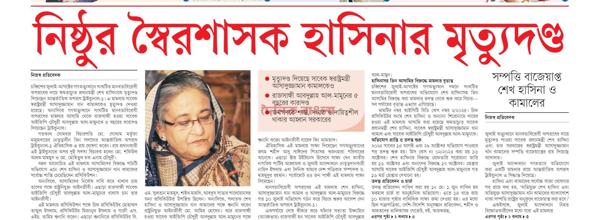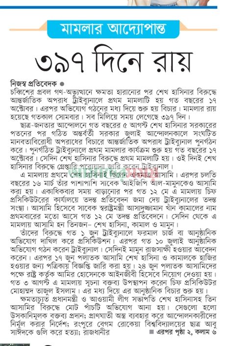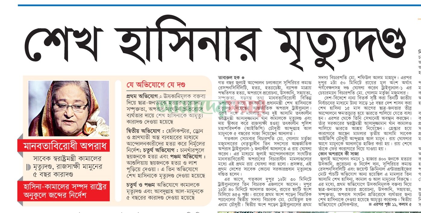 page01_108page01_103page01_101May be an image of text that says 'হাসিনা- ননা-কামালের মৃত্যুদনু মানবতাবিরোধী অপরাধ মামলার রায় রাজসাক্ষী মামুনের হাসিনা- কামালের সম্পদ বাজেয়াপ্তের আদেশ বছর কারাদং হতাহতদের স্মমতিপূরণ দিতে সরকারকে নির্দেশ দেশবাসীকে শান্ত থাকার আহ্বান সরকারের হাসিনা প্রতিবেদক মৃত্যুদের রায়ে কষ্ট পাচ্ছি -রাষ্টরনিযুক্ত আইনজীবী আমির হোসেন হসিনা-কামালকে ফিরিয়ে দেওয়ার আহ্বান অপরাধের 의& সংঘাটিত মানবঙাবিরোদী হাসিনাকে ফেরত প্রধানমন্ট্রী হাসিনা চেয়ে ফের চিঠি দেবে বাংলাদেশ উপদেষ্টা আহা্কীনি) জুলাই শহীদরা ন্যায়বিচার পেয়েছেন জেনারেল রায় প্রতিশোধ নয়, ন্যায়বিচারের প্রতিজ্ঞা প্রসিকিউটর প্রতিবেদক প্রতিবেদক সংবটিত মৃত্দ্যদহ দিয়েছেল প্রতিবেদক নানবাবিরোধ মতাছাত আসাদুজজামাল কিরিয়ে কামাল চেয়ারমান হাসিনাসহ আবারও বিচারপাত দেয়া আসিফ নজরল সটিবালয়ে উপদেঞা গত্কাল প্রতিষ্ঠার বলেছেল. জুলাই বিপ্নবের শহাদরা নযয়াবচার পেয়েছেল করেছেন আস্তর্জাৃতিক যপর্াধ টাইবানালের প্রসিকিতুটর'page-1-tag-11.jpgpage-1-tag-8.jpg
