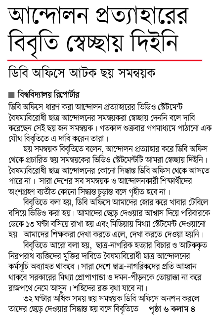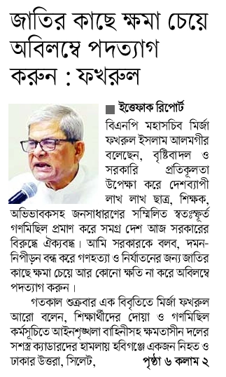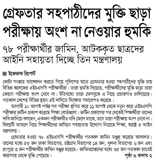 বাংলাদেশ থেকে প্রকাশিত আজকের সংবাদ পত্র – ০৩ আগস্ট ২০২৪