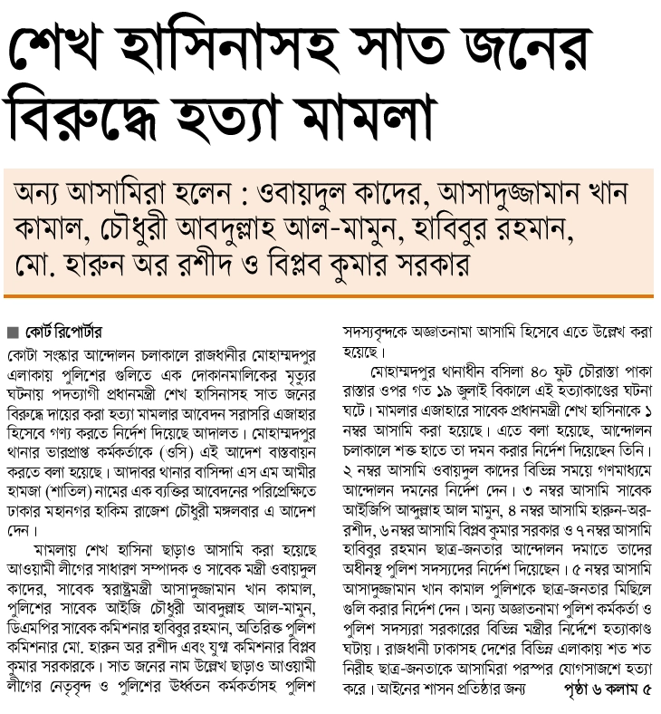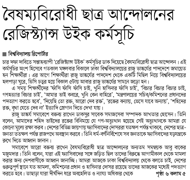 বাংলাদেশে প্রকাশিত সংবাদপত্র – ১৪ আগস্ট ২০২৪